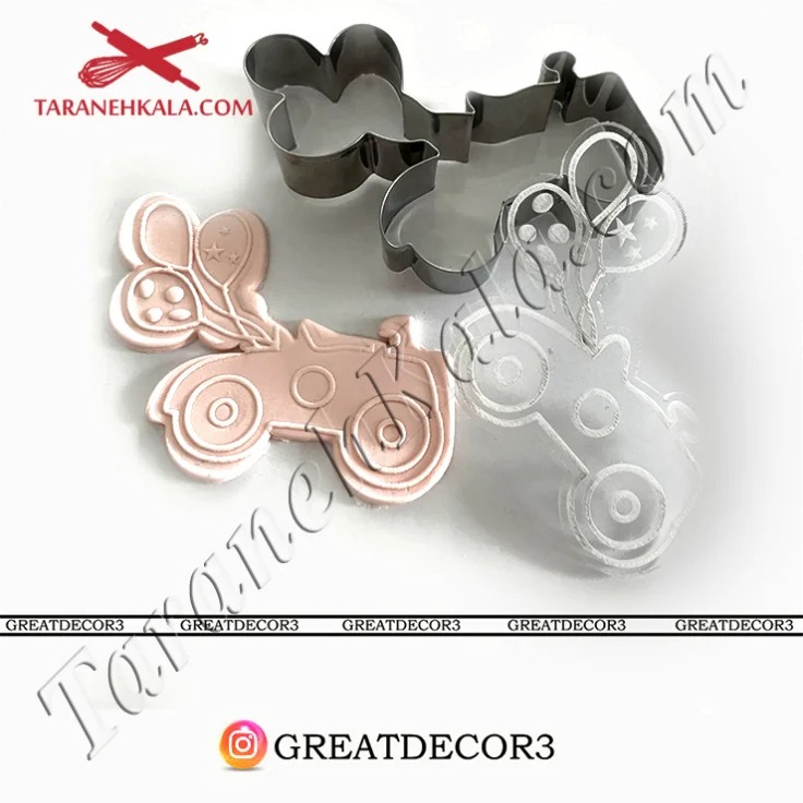 ترکیب ماشین و بادکنک معمولاً حس جشن، حرکت، ماجراجویی و شادی کودکانه را تداعی میکند و برای مناسبتهایی مثل جشن تولد کودک، تمهای پسرانه، مهمانیهای شاد یا حتی دسرهای مناسبتی با حالوهوای بازی و سرگرمی بسیار کاربرد دارد. استفاده از این ابزار بسیار ساده است: ابتدا با کاتر، خمیر را به شکل دلخواه برش میزنید و سپس با استامپ، طرح را روی آن ایجاد میکنید تا نتیجهای دقیق و جذاب به دست آید.