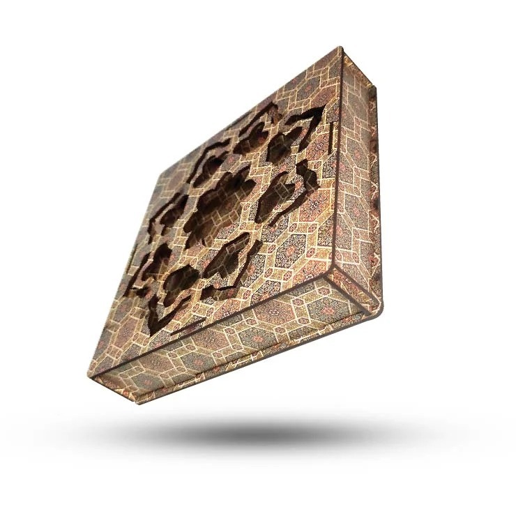 جعبه شیرینی طرح خاتم با ساختار مقاوم و کیفیت بالا، علاوه بر زیبایی، امنیت و محافظت کامل شیرینیها را در طول حمل و نقل و نگهداری تضمین میکند.