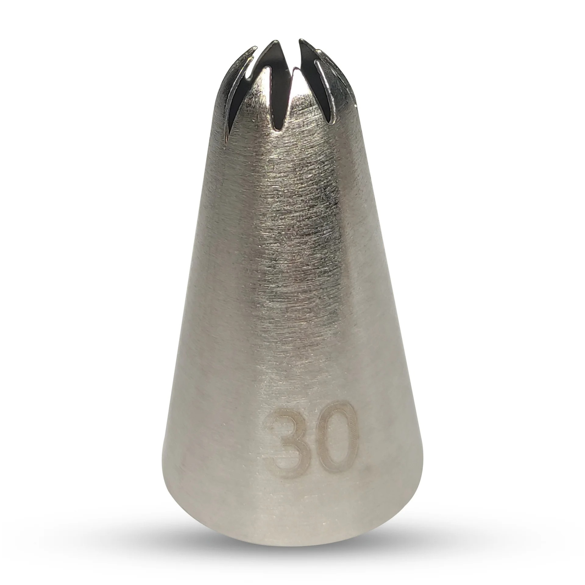 ماسوره ۳۰، ابزاری ساده و کاربردی برای ایجاد خطوط صاف، نقطه‌های ریز و جزئیات دقیق در تزئین کیک و شیرینی است. این ماسوره با دهانه گرد و اندازه مناسب، به قنادان امکان می‌دهد طرح‌هایی منظم، ظریف و زیبا روی دسرهای خود خلق کنند و جلوه‌ای حرفه‌ای به کیک‌ها ببخشند.