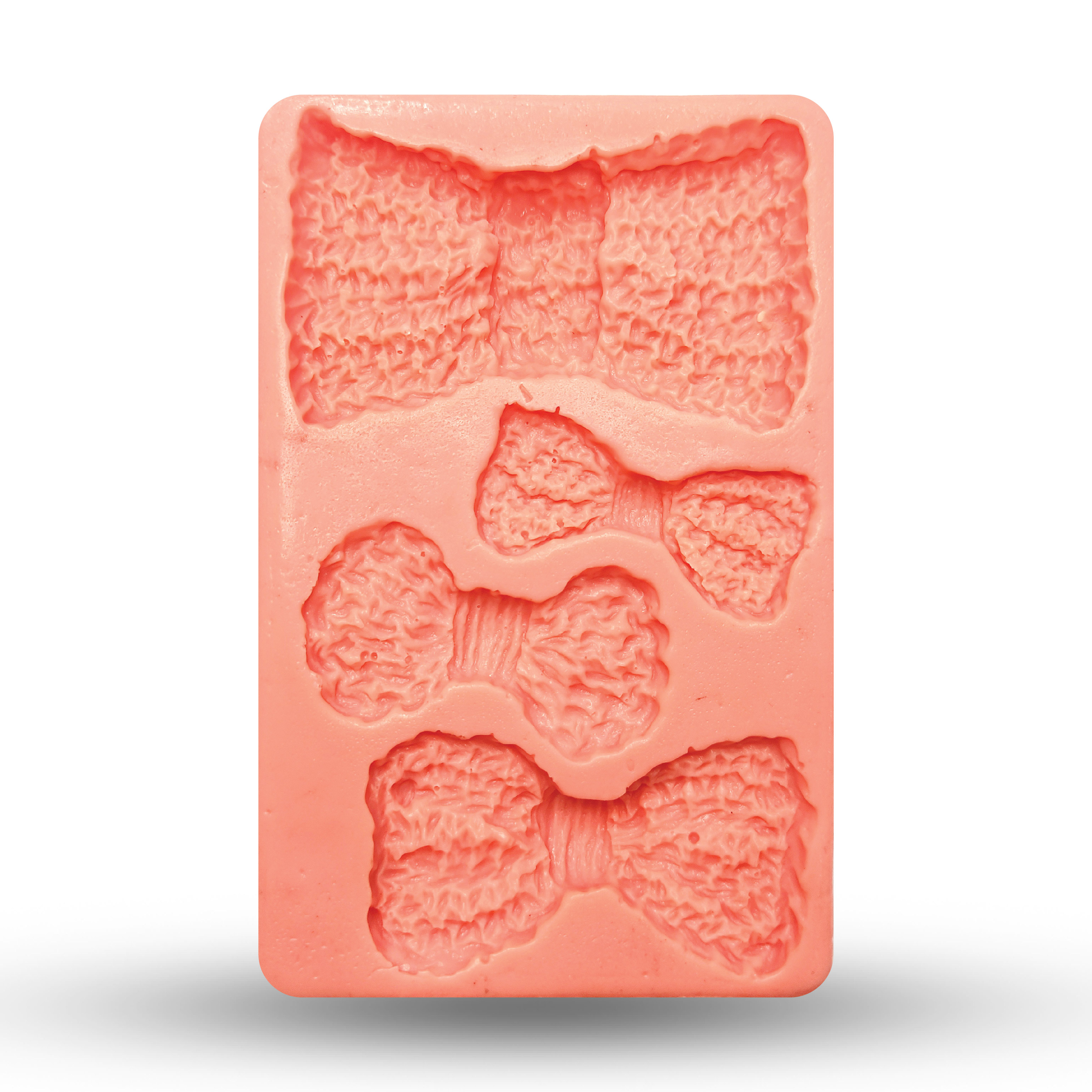 طراحی ظریف و بافتدار – این قالب با جزئیات دقیق، پاپیونی زیبا با طرح بافت برجسته را روی فوندانت، مارزیپان یا خمیر شکلاتی ایجاد میکند.