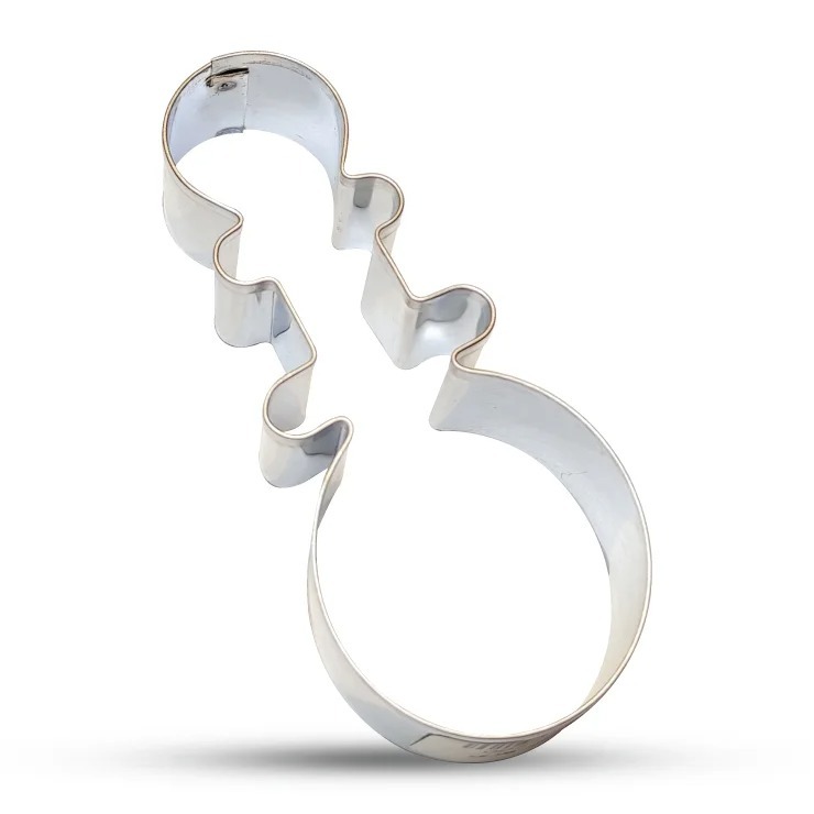 کاتر جغجغه فلزی قالبی بامزه و جذاب به شکل جغجغه اسباببازی کودکانه است که برای برش خمیرهای تزئینی مثل فوندانت، مارزیپان، خمیر کوکی و گامپست استفاده میشود. این کاتر مخصوص جشنهای نوزادی، بیبیشاور و تولدهای کودکانه بوده و به تزئین کیک و شیرینیها جلوهای شاد و دوستداشتنی میبخشد.
