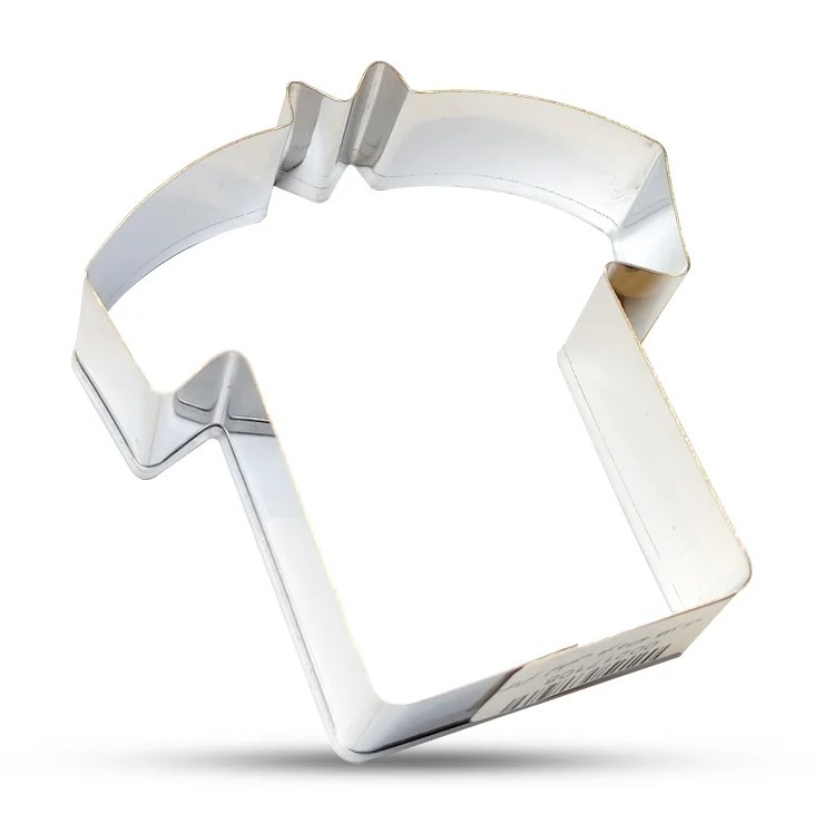 کاتر لباس مردانه فلزی ابزاری کاربردی برای برش خمیر فوندانت، خمیر کوکی یا شیرینی به شکل لباس مردانه است. این کاتر برای تزئین کیک‌ها و دسرهای مرتبط با مناسبت‌های رسمی، جشن‌های مردانه یا تم‌های خاص بسیار مناسب است.