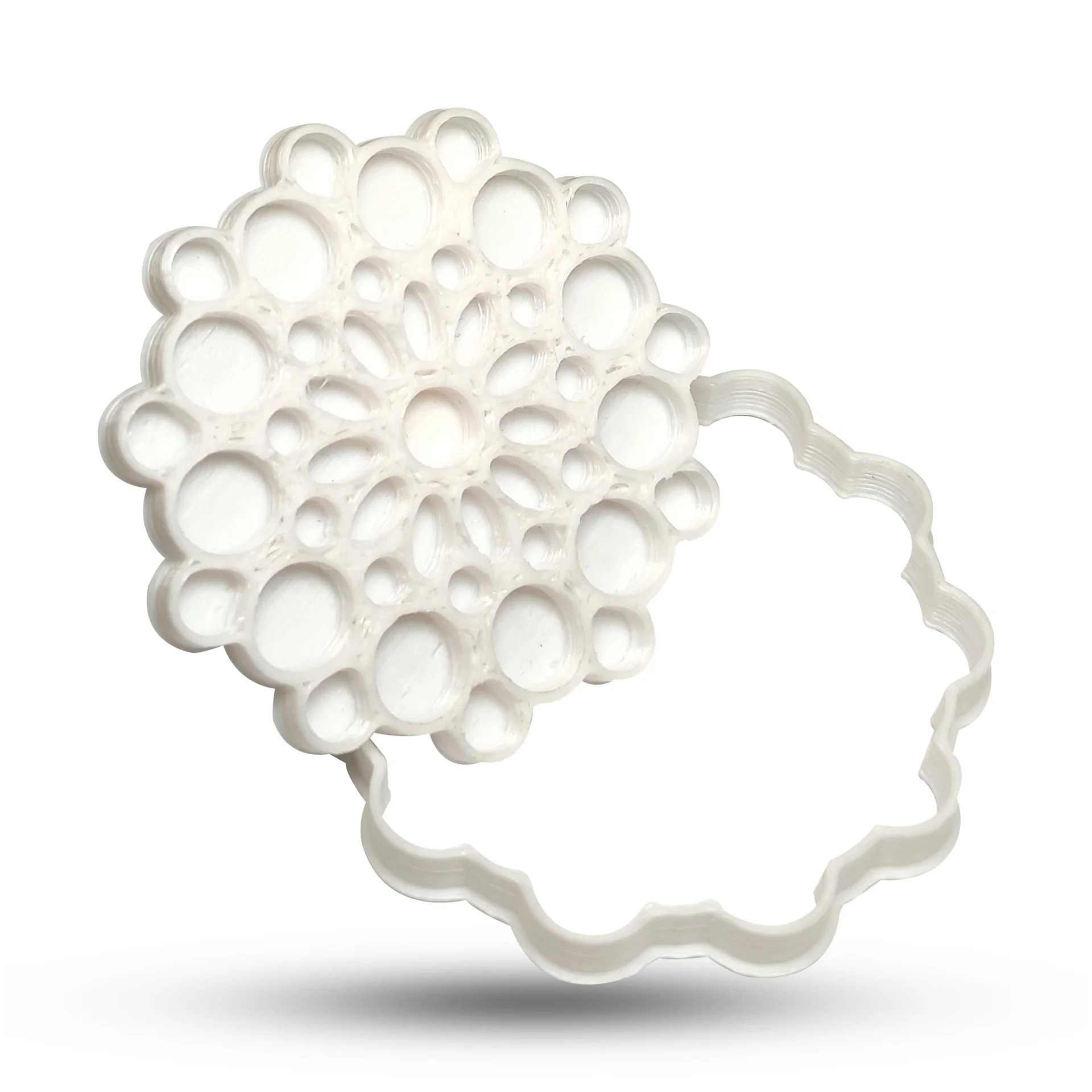 کاتر و مهر بهطور همزمان خمیر را قالب میزند و نقش برجستهای روی آن ایجاد میکند؛ سریع، تمیز و بدون نیاز به ابزارهای اضافی.قابل استفاده با انواع مواد