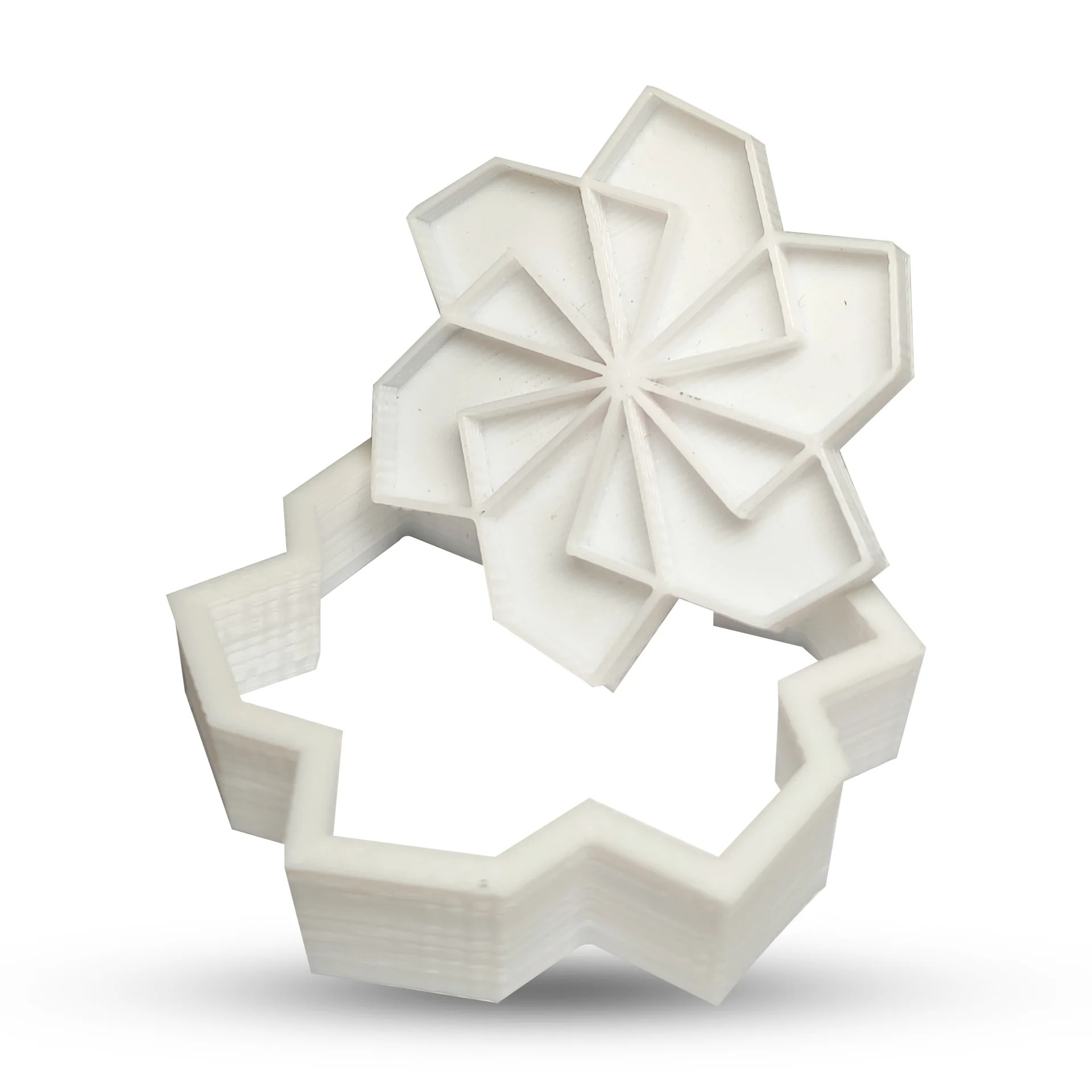کاتر و مهر سه‌بعدی پیچ برای برش و شکل‌دهی دقیق انواع مواد تزئینی استفاده می‌شود و مناسب برای تزئین کیک، شیرینی، کوکی و سایر دسرهاست.