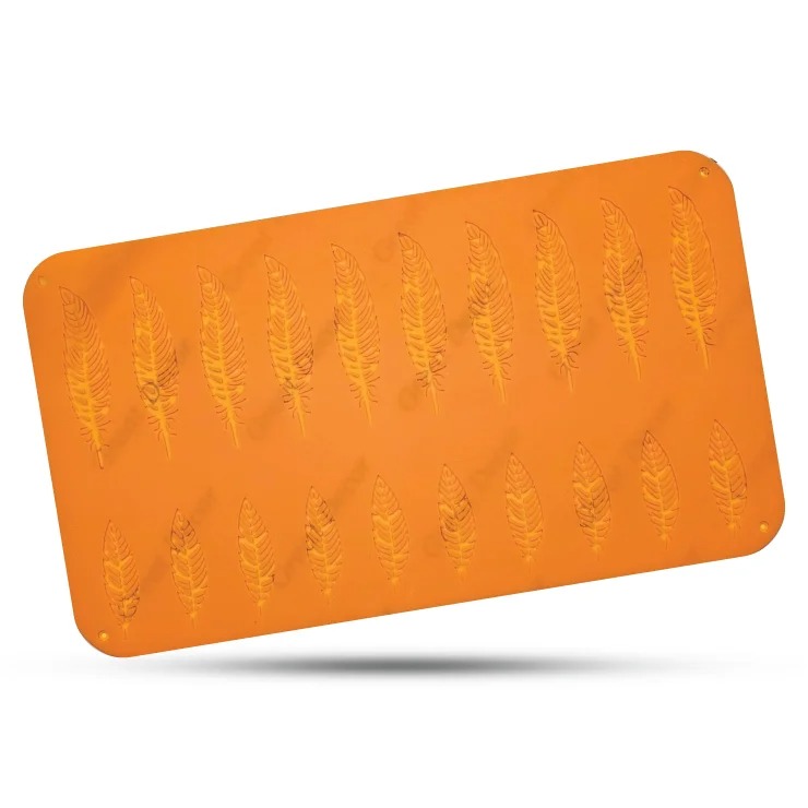 قالب سیلیکون گارنیش طرح پر، ابزاری خاص و شیک برای افزودن طرحی ظریف و زیبا به دسرها و شکلات‌های شماست. با طراحی دقیق و برجسته پر، این قالب امکان خلق تزئیناتی منحصر به فرد و چشم‌نواز را روی سطح انواع دسرها فراهم می‌کند.