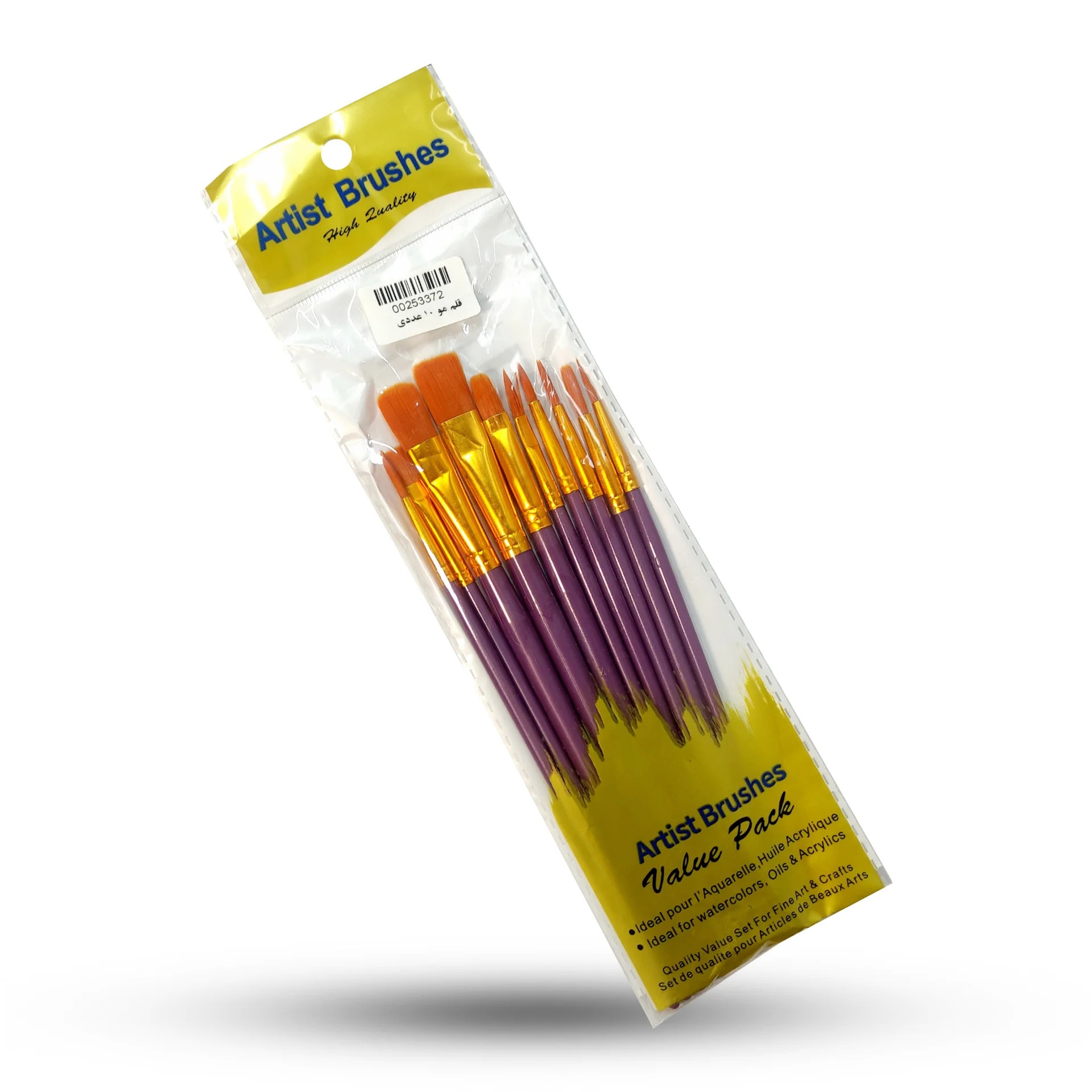 شامل ۱۰ قلممو با اندازه و شکل متنوع (صاف، نوکتیز، گرد و...)