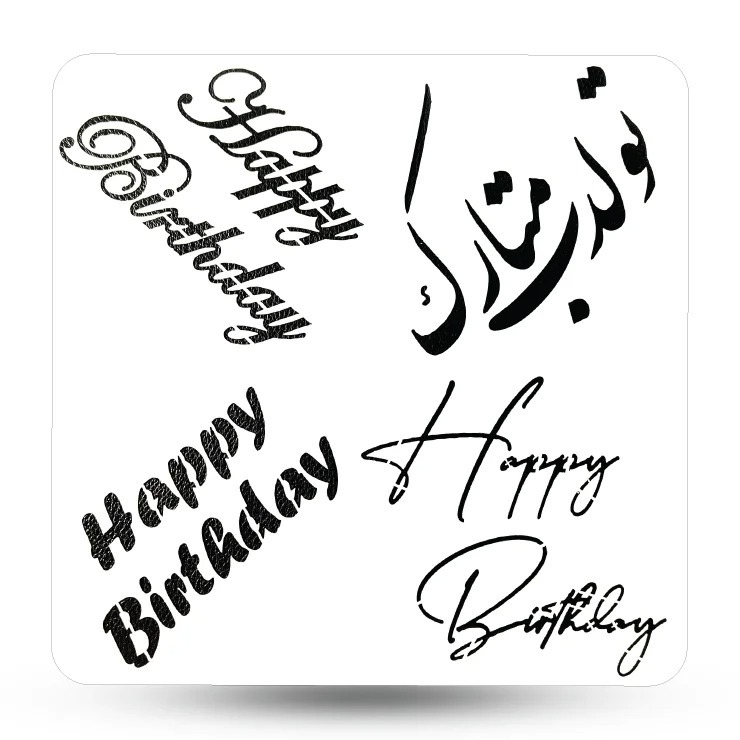 اگر به دنبال لمس زیبایی و سادگی در تزیینات جشن تولد هستید، استنسیل "تولدت مبارک" دقیقاً همانیست که نیاز دارید! با طراحی حرفهای و جزئیات دقیق، این شابلون به شما امکان میدهد نوشتهای شاد و هنری را روی انواع سطوح خلق کنید: از کارتهای تبریک گرفته تا کیک، دیوار، کادو و حتی بادکنکها!